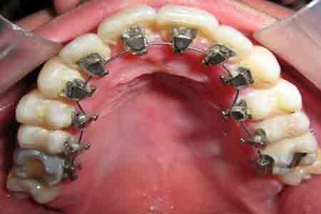 5. يقوم طبيب الأسنان بتثبيت التقويم بعد تنظيف وتجفيف الفم.