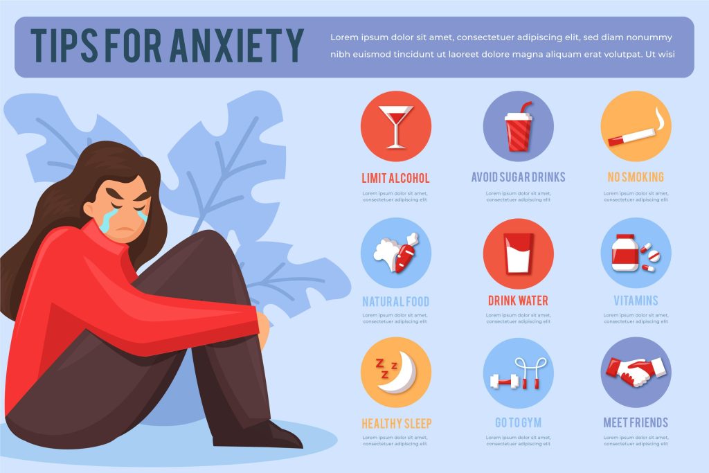 In addition, individuals can search for ways to control stress and anxiety through practicing relaxation techniques, such as meditation and deep breathing, which help calm the mind and improve psychological well-being.